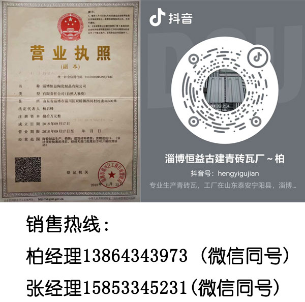 淄博恒益陶瓷制品有限公司位于山東淄博建陶工業(yè)園,有悠久的陶瓷生產歷史,豐富的陶瓷原料資源,交通便利,出門即是205國道,產品繼承傳統(tǒng)工藝生產,并獲得非遺傳承人,產品制作精良,古香古色,健康環(huán)保,經(jīng)1100度高溫燒成,不褪色。特別是運用了現(xiàn)代真空抽制技術,更是增強了產品的內在和外觀質量,強度更高,密實度更強。廣泛使用于園林,別墅,景觀的建造,日漸成為仿古建筑的主力軍。